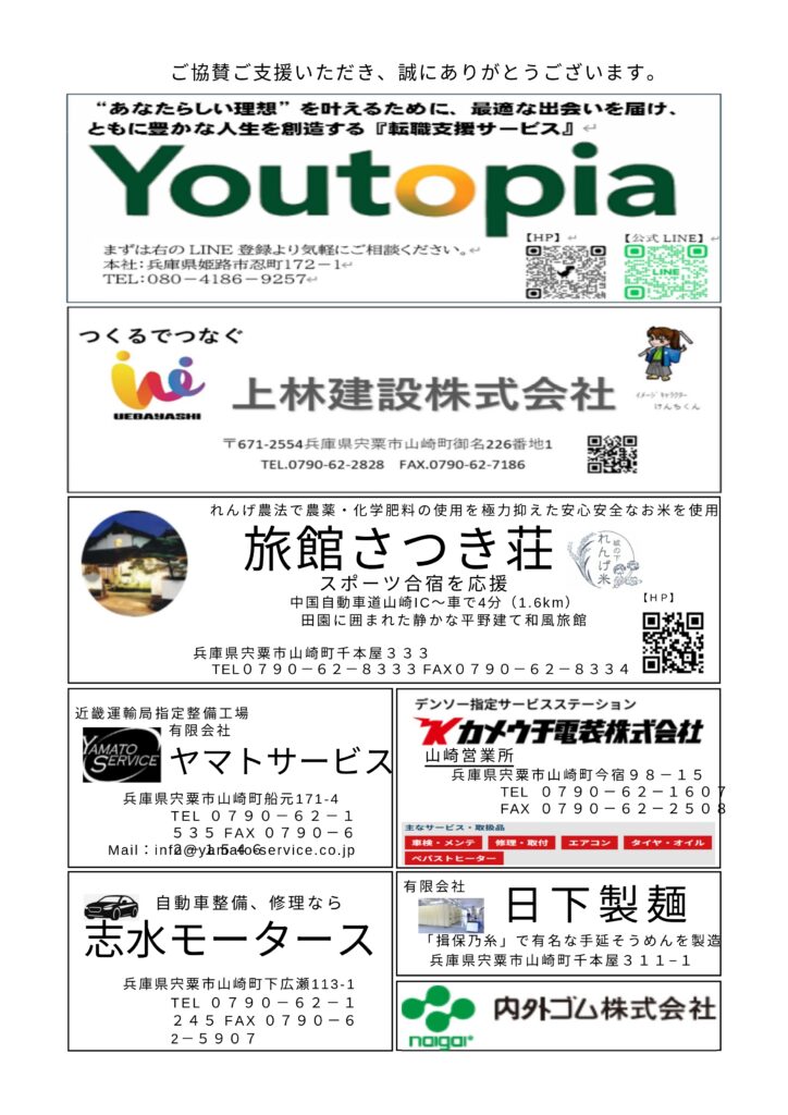 協 賛:Youtopia株式会社、上林建設株式会社、旅館さつき荘、有限会社ヤマトサービス、カメウチ電装株式会社、志水モータース、日下製麺、内外ゴム株式会社